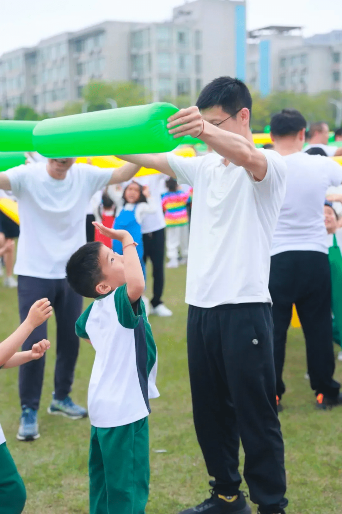 In April 2024, Wenhan Kindergarten, affiliated with Zhejiang University of Finance and Economics, organized the “Empowering Fathers” Spring Parent-Child Sports Event and the “Children’s Salon · Super Dad Camp.” These events highlighted the crucial role and positive influence of fathers in their children’s development. By engaging in these activities, fathers not only deepen their bonds with their children but also set healthy, positive, and courageous examples. More importantly, these activities embody the principles of “child-friendliness,” aiming to create a social environment conducive to children’s physical and mental well-being, respectful of their rights, and encouraging of their active participation.