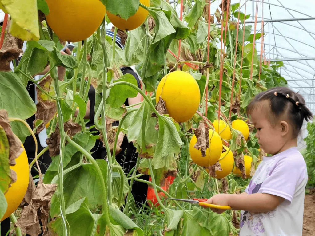 At the melon planting base, agricultural experts explained the steps and key points of fruit harvesting, then encouraged the children, together with their parents, to collaborate and experience farm work. The fields were soon filled with laughter and cheers as they worked together.